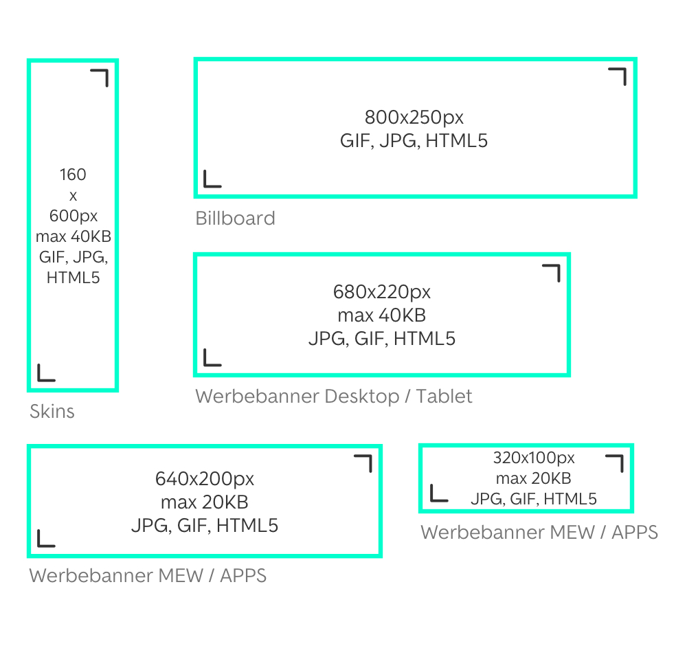 Die Werbebanner über dem ersten Suchergebnis, unter der Karte und in der Ergebnisliste sind exklusiv für Sie reserviert und können zur gleichen Zeit nicht vom Wettbewerb gebucht werden. Zusätzlich erscheint Ihr Banner-Set links und rechts neben der vergrößerten Kartenansicht.