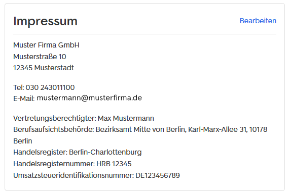 Hier sehen Sie ein Musterbeispiel eines Impressums: