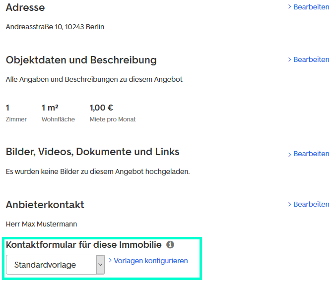 Weisen Sie jedem Ihrer Objekte ein Kontaktformular zu.