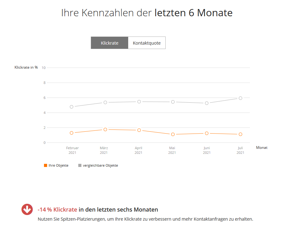 Die Klickrate beschreibt die Exposéaufrufe im Verhältnis zu "in Ergebnisliste gesehen".
