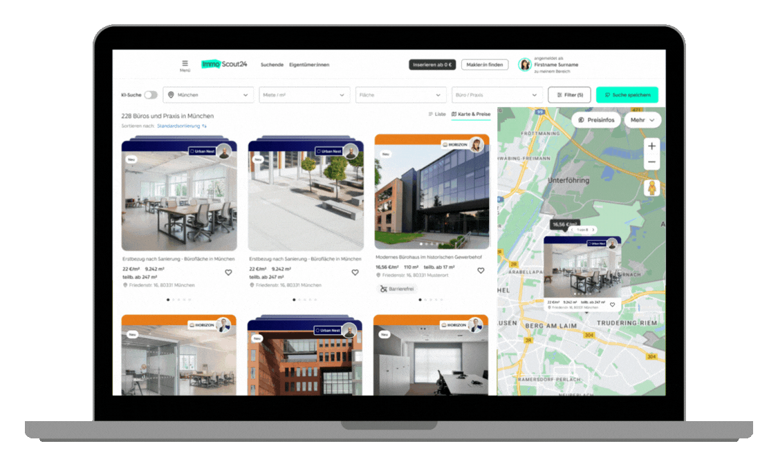 Durch modernste Technologie wird die Immobiliensuche und das Inserieren von Gewerbeimmobilien auf ImmoScout24 noch intuitiver und effizienter.