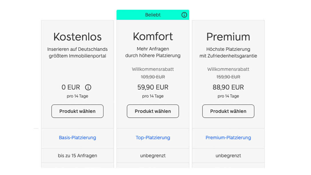 Alle Daten eingegeben? Super! Wähle im nächsten Schritt die kostenlose Basisanzeige aus. Du kannst einmal alle sechs Monate kostenlos bei ImmoScout24 inserieren.