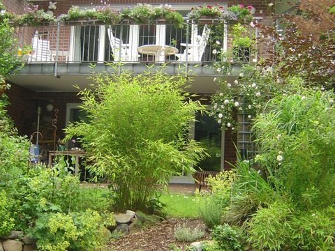 Vermietet wird hier eine im Jahr 1991 gebaute Doppelhaushälfte in hinterer Bebauung. Trotz Ihrer sehr verkehrsgünstigen Lage ist diese Haushälfte dadurch absolut ruhig gelegen. Das Haus mit seinem großen Wohn- und Eßzimmer und 5 weiteren Räumen wurde bis 2016 von der Eigentümerfamilie bewohnt. Zu der Haushälfte gehört ein 400 m2 Grundstücksanteil welcher gärtnerisch angelegt ist. Vorhanden ist ein gepflegter Pflanzenbestand mit Buchsbaumkugeln, Rhododendren und einer Magnolie. Durch die vorhandene Talsituation ergibt sich, daß insgesamt 3 Ebenen zu Wohnzwecken zur Verfügung stehen Das Haus ist mit dem für Hamburg typischen Rotklinker gebaut und hat große, teilweise bodentiefe, weiße Holzfenster und Türen. Alle Fenster in Untergeschoß und Erdgeschoß sind mit Rolläden versehen, die teilweise elektrisch gesteuert werden. Die Elektroinstallation ist überall mit ausreichend Steckdosen und Schaltern ausgeführt. Für die Toilettenspülung wird Regenwasser aus einer 6 m3 großen Zisterne verwendet. Das Erdgeschoß wird bestimmt durch den großen, ineinander übergehenden Wohn- und Eßbereich. Vom Wohnzimmer hat man direkten Zugang zu einem Balkon mit Süd-West Ausrichtung mit Blick ins Grüne. Zusätzlich befindet sich im Erdgeschoß der Eingang, Küche und Gäste WC. Der Zugang zu einer überdachten Terrasse erfolgt vom im Untergeschoß gelegenen großen Zimmer. Neben der Terrasse befindet sich ein kleiner Teich mit einem Brunnen. Für warme Tage gibt es noch eine kleine Terrasse. Da diese nahe dem Eingang liegt und von der Küche gut zu erreichen ist bietet sich diese Terrasse zum Frühstücken an. Oder auch um ungestört am Nachmittag in der Sonne zu liegen und ein Buch zu lesen. Für die Gartengeräte und Fahrräder sowie die Winterlagerung der Gartenmöbel ist ein Holzschuppen auf dem Grundstück vorhanden. Mit angeboten wird eine Garage an dem gemeinsamen Garagenplatz auf dem Grundstück. Es wäre schön wenn die neuen Bewohner Spaß an Gartenarbeit haben. Umgelegt würden dann bei diesem Objekt nur die Kosten die direkt vom Vermieter getragen werden müssen und umlagefähig sind (Versicherung und Grundsteuer) Alle anderen Kosten (Strom, Wasser, Heizung) sind mit den betreffenden Unternehmen abzurechnen. Die Gartenarbeit, Müllabfuhr, Gehwegreinigung + Schnee & Eisbeseitigung sowie Regenrinnenreinigung ist von den Mietern durchzuführen bzw. zu organisieren. Auf Wunsch können einige dieser Positionen in die Nebenkosten eingeschlossen werden Mietvertrag: Es wird ein unbefristeter Hamburger Mietvertrag angeboten