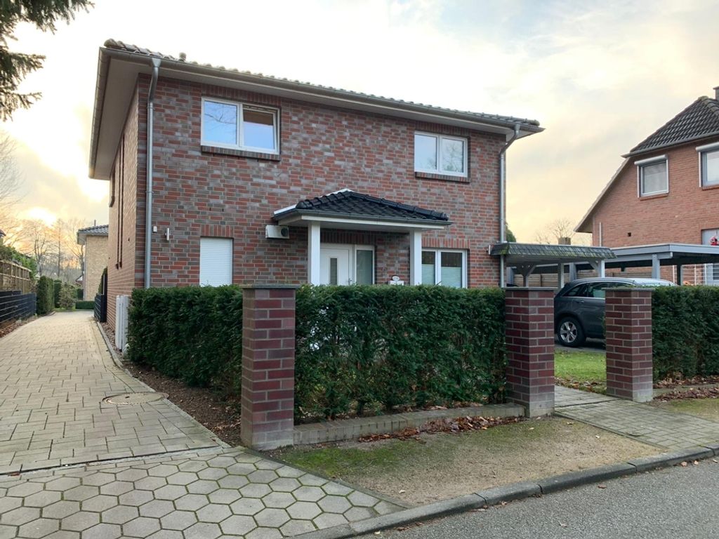 Das Haus bietet mit seiner exklusiven Ausstattung sehr hohen Wohnkomfort. Der große Wohn-/ Essbereich ist hochwertig gefliest und ist durch bodentiefe Fenster sehr hell gestaltet. Die Küche ist zum großzügigen Wohnraum hin geöffnet. Diese ist mit einem hochwertigen Markeneinbauprogramm ausgestattet und beinhaltet alle wünschenswerten Geräte wie z.B. Backofen, Geschirrspülmaschine, Kühlschrank, Gefrierschrank und Ceran-Kochfeld. Besonders hervorzuheben ist die schöne Kochinsel. Im Erdgeschoss befindet sich außerdem ein modernes Duschbad, - weiß gefliest - welches auch gleichzeitig als Gäst-WC dient. Das Obergeschoss verfügt über drei Schlafzimmer und ein Vollbad. Das geschmackvolle Bad ist modern gestaltet und verfügt über eine bodentiefe Dusche, eine Badewanne und einen Doppelwaschtisch. Das gesamte Erdgeschoss sowie die Treppen sind mit hellen, modernen Fliesen versehen, das Obergeschoss ist mit ansprechendem Laminatfußboden (Optik: "Wildkirsche") ausgestattet. Im Keller des Hauses befinden sich, neben dem Heizungsraum, ein praktischer Vorratsraum sowie ein ca. 41 m² großer Raum, der sich ideal als Hobby- oder Arbeitszimmer nutzen lässt. Der gesamte Keller ist gefliest und beheizbar. Es wird ein Hamburger Mietvertrag mit einem Kündigungsausschluss von 2 Jahren abgeschlossen.