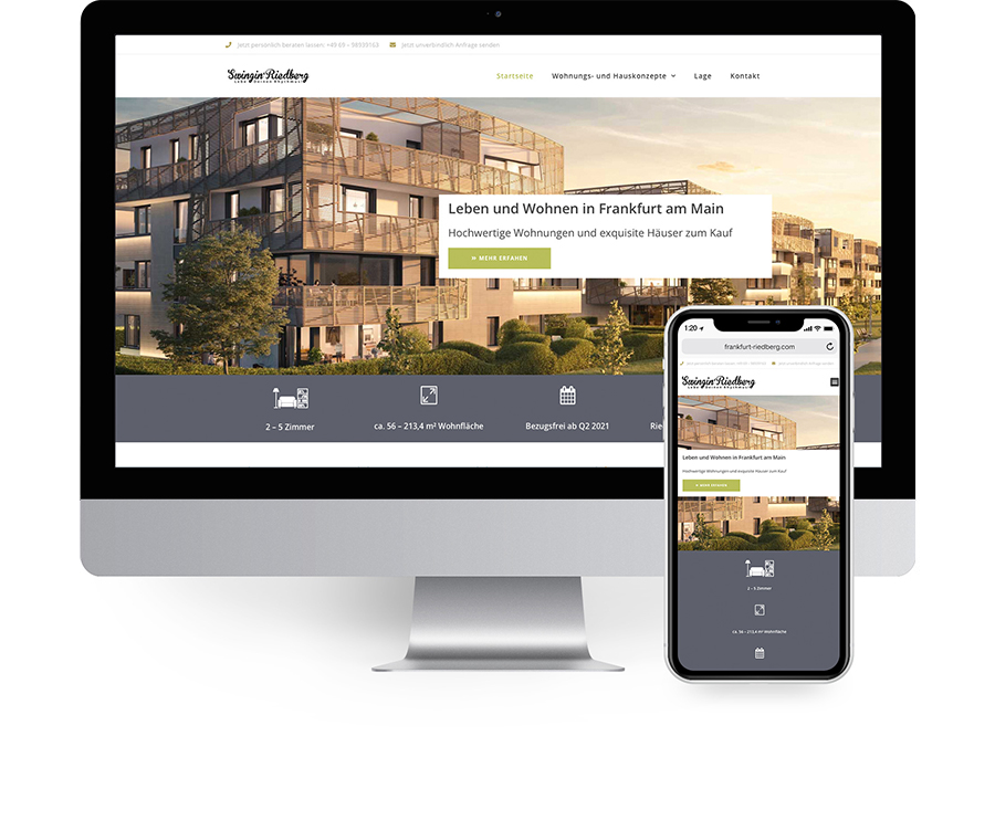 Mit der Neubau Edition von ImmoScout24 hat Lechner Immobilien Development das ganze Jahr über Zugriff auf die Standortanalyse von ImmoScout24 und gewinnt damit wertvolle Einblicke hinter die Suchmaske der Nr. 1-Plattform für Immobilien mit über 13,8 Millionen Suchenden monatlich. Für das Großprojekt in Frankfurt-Riedberg nutzt das Unternehmen die Leistungen des Full Service Konzepts und profitiert von einer individuell gestalteten Projektwebseite, hoch performanten Media-Kampagnen und einem eigenen Projektconsultant, der sich um die stetige Pflege und Optimierung des Onlineauftritts kümmert.
