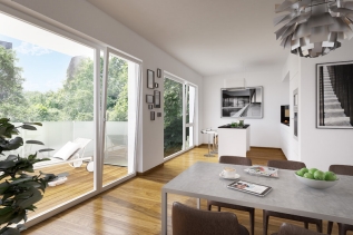 Transparenz und Weite bestimmen das Lebensgefühl in den hellen großzügigen Wohnungen. Aus- und Durchblicke inspirieren die Gedanken.