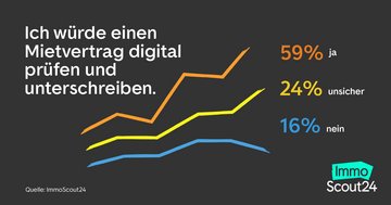 Doch wo soll die digitale Unterschrift zum Einsatz kommen? 59 Prozent der Deutschen wären bereit, ihren Mietvertrag für das neue Zuhause digital zu prüfen und zu unterschreiben. Männer zeigen sich mit 68 Prozent für die Option noch offener als Frauen mit 51 Prozent. Die höchste Bereitschaft, den Mietvertrag digital abzusegnen, zeigt sich mit 72 Prozent bei der Altersgruppe der 30- bis 39-Jährigen.