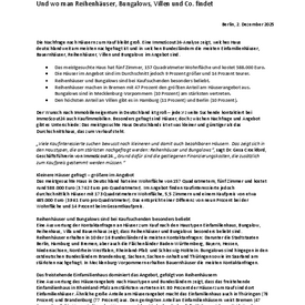- Reihenhäuser machen in Bremen mit 47 Prozent den größten Anteil am Häuserangebot aus. Bungalows sind in Mecklenburg-Vorpommern (10 Prozent) am stärksten vertreten.