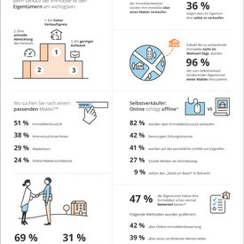 Bei der Frage, wie man einen Immobilienverkauf auf eigene Faust umsetzen würde, entscheidet sich die Mehrheit für den Weg, dies online zu tun. Das marktführende Portal ImmobilienScout24 würden 82 Prozent der Selbstverkäufer als Vertriebskanal in Betracht ziehen. Zeitungsinserate sind noch für 42 Prozent ein relevanter Vertriebsweg. Das persönliche Umfeld spielt für 41 Prozent eine Rolle. Soziale Medien sind für 27 Prozent mögliche Vertriebswege, der berühmte "Zettel am Baum" oder Aushang im Supermarkt wird von nur 9 Prozent in Betracht gezogen (Mehrfachnennungen waren möglich).