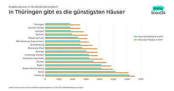 - Angebotspreise in Hamburg, Berlin, Bayern und Baden-Württemberg sind zwei- bis dreimal so hoch wie in Thüringen.
