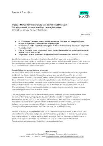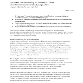 - ImmoScout24 bietet ab sofort eine digitale Mietausfallversicherung als Service für private Vermieter:innen.