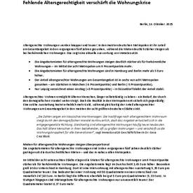 Die Entwicklung verschärft sich durch den demografischen Wandel: Bis 2030 wächst die Zahl der über 75-Jährigen in den deutschen Metropolen um vier bis sieben Prozent. Eine Sonderauswertung im WohnBarometer Q3 2025 für den Mietmarkt zeigte, dass Senioren überwiegend kleine, günstige Wohnungen suchen, das Marktangebot jedoch deutlich teurer und größer ausfällt. Viele ältere Menschen bleiben daher in ihren bestehenden, günstigeren Mietverträgen – oft in größeren Wohnungen, die für Familien geeignet wären. Dies verschärft die Knappheit an bezahlbarem Wohnraum zusätzlich.