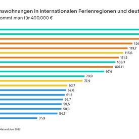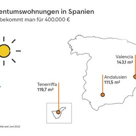 Insel vs. Großstadt: Feriendomizile auf Mallorca kosten nur ein Viertel von Eigentumswohnungen in München und Immobilien auf Teneriffa kosten nur halb so viel wie in Berlin.