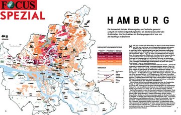 Wo sich der Bau oder Kauf einer Immobilie besonders rechnet, erläutern redaktionelle Marktportraits der zwölf deutschen Metropolen Hamburg, Bremen, Hannover, Berlin, Leipzig, Dresden, Köln, Düsseldorf, Frankfurt, Stuttgart, München und Nürnberg. Rundgänge mit Kennern und detaillierte Einzelkarten der Metropolen geben Einblick in die durchschnittlichen Angebotspreise für Mietwohnungen, Bestandseigentumswohnungen und Einfamilienhäuser auf Basis einer umfangreichen Auswertung von ImmoScout24. Darüber hinaus enthält der „FOCUS Spezial Immobilien Atlas 2020“ 10 Geheimtipps für Anleger abseits der Metropolen, die großes Potential für Wertsteigerungen bieten.