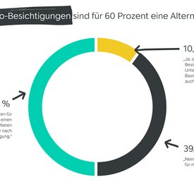 Knapp die Hälfte aller Befragten ist überzeugt, dass Video-Besichtigungen eine gute Möglichkeit sind, sich einen ersten Eindruck zu verschaffen und eine Vorauswahl zu treffen. 10,5 Prozent würden sogar einen Miet- oder Kaufvertrag auf Basis einer Video-Besichtigung abschließen. Die Bereitschaft steigt, je jünger die Befragten sind. Bei den unter 30-Jährigen liegt der Prozentsatz bei 16 Prozent, bei den über 50-Jährigen bei sechs Prozent. Zudem zeigen sich Männer für diese Option mit 13 Prozent offener als Frauen mit 8 Prozent. Für rund vier von zehn Deutschen ist eine Video-Besichtigung noch keine Alternative zur traditionellen Besichtigung.
