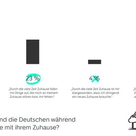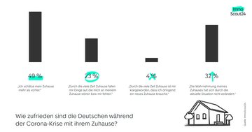 Fällt den Deutschen wegen Home Office und Ausgangsbeschränkungen langsam, aber sicher die Decke auf den Kopf oder fühlen sie sich zuhause wohl? Knapp die Hälfte der Befragten (49 Prozent) wissen ihr Zuhause laut der Umfrageergebnisse in Zeiten von Corona noch mehr zu schätzen. Ein Drittel (32 Prozent) der Befragten bewertet ihr Zuhause genauso wie zuvor. Doch bei einem knappen Viertel stellt sich langsam der Lagerkoller ein (23 Prozent). Sie stört von Tag zu Tag immer mehr am eigenen Zuhause oder es fehlen ihnen gewisse Annehmlichkeiten. Vier Prozent fühlen sich in den eigenen vier Wänden gar nicht wohl und wollen schnellstmöglich ein neues Zuhause finden. Die Immobiliensuche könnte dadurch zusätzlich an Schwung gewinnen.