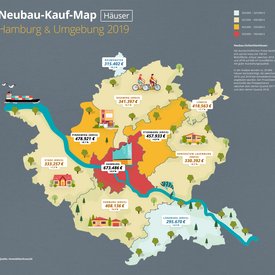 Am erschwinglichsten ist der Immobilienkauf außerhalb Hamburgs im Landkreis Lüneburg. Hier kostet ein Neubau-Haus im Durchschnitt 295.670 Euro, das sind 4,5 Prozent mehr als Ende 2017. Ein Neubau-Haus in Hamburg kostet Ende 2018 im Durchschnitt 673.486 Euro, das macht im Vergleich zum Vorjahr eine prozentuale Steigerung von 6,6 Prozent aus.