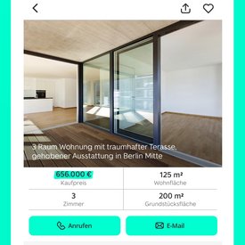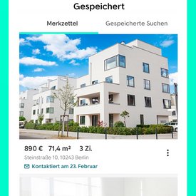 Das bestätigen auch die Nutzer-Tests der vergangenen sechs Wochen: Denn der ein oder andere hat schon das türkise Icon auf seinem Smartphone entdeckt und ist beim Klick darauf in der neuen ImmoScout24-App gelandet. Das Feedback der 650.000 Test-Nutzer war einhellig positiv. Die App im neuen Design lässt sich intuitiv bedienen und die gewohnten Funktionen finden sich direkt.
