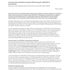 - Ein innovatives Modul, das ImmoScout24 für seinen Kunden CENTURY 21 Deutschland entwickelt hat, ermöglicht erstmals eine direkte Buchung von Sonderplatzierungen aus CRM-Systemen.