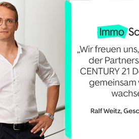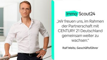 „Die technologische Kompetenz von ImmoScout24 hat mich überzeugt: Wir sind stolz auf die strategische Partnerschaft. Beide Marken sind Treiber der Digitalisierung in der Immobilienbranche und ich bin begeistert, wie schnell Projekte von ImmoScout24 angegangen und umgesetzt werden. Gemeinsam mit unserer Digital-Plattform, Marketing und Training erhalten unsere CENTURY 21 Deutschland - Partner damit alle Werkzeuge direkt aus einer Hand. Unsere Makler und Büros profitieren davon täglich und können sich auf das Konzen- trieren was sie am liebsten tun: Unsere Kunden professionell und erfolgreich im Verkauf ihrer Immobilie beraten", kommentiert Christian Ammann, CEO von CENTURY 21 Deutschland, die Kooperation.