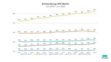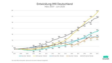 Wie hat der Wohnimmobilienmarkt die Corona-Krise überstanden? Der aktuelle Wohnimmobilienindex IMX von ImmoScout24 liefert Antworten. Sowohl Kauf- als auch Mietpreise stiegen im zweiten Quartal 2020 deutschlandweit über alle Immobilientypen hinweg wieder deutlicher an.