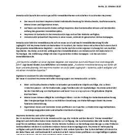 - Der neue KI-Assistent HeyImmo bietet individuelle Beratung für Mietsuchende, Kaufinteressierte, Mieter:innen und Eigentümer:innen.