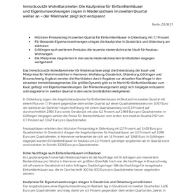 ImmoScout24 WohnBarometer zur Preisentwicklung in Niedersachsen