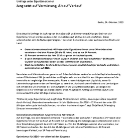 Ergebnisse einer repräsentativen Online-Umfrage von Goldberger Market Analytics im Auftrag von ImmoScout24 im Oktober 2025. Befragt wurden deutschlandweit insgesamt 535 Immobilieneigentümer:innen im Alter zwischen 18 und 69 Jahren.