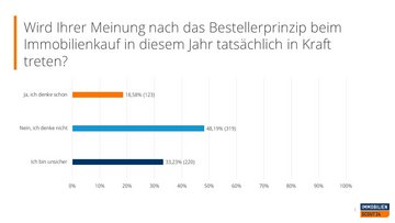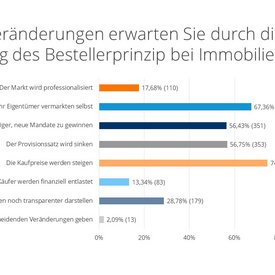 - Die Immobilienbranche erwartet laut einer Umfrage von ImmobilienScout24 steigende Kaufpreise, falls die Initiative der Justizministerin zum Bestellerprinzip für den Verkauf von Immobilien als Gesetz in Kraft tritt