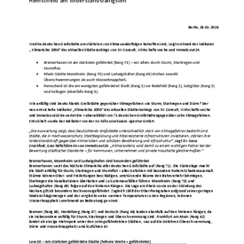 - Bremerhaven ist am stärksten gefährdet (Rang 71) – vor allem durch Sturm, Starkregen und Sturmflut.