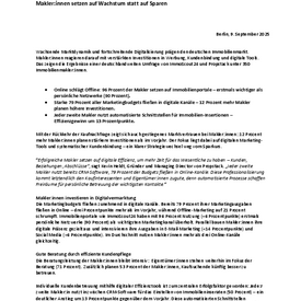 - Starke 79 Prozent aller Marketingbudgets fließen in digitale Kanäle – 12 Prozent mehr Makler planen höhere Investitionen.