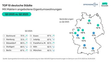 Eine aktuelle Auswertung von Sprengnetter und ImmoScout24 zeigt: Die Maklerquote erreicht den höchsten Stand seit einem Jahr.