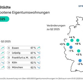Für diese Analyse wurden über 400.000 Eigentumswohnungen im Zeitraum vom 01.01.2020 bis 30.09.2025 untersucht. Die Zahlen zu den einzelnen Städten sind der beigefügten Grafik zu entnehmen.