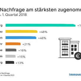 Nachfrage-Entwicklung Q1 2023 vs. Q1 2018: Städte mit der stärksten Zunahme