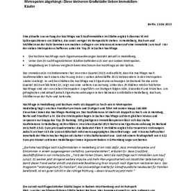 „Die hohe Nachfrage nach Kaufimmobilien in Heidelberg ist ein Indiz dafür, dass die Immobilienpreise hier zum Marktumfeld passen“, erläutert Dr. Gesa Crockford, Geschäftsführerin von ImmoScout24. „Denn trotz der hohen Zinsen, kehrt die Nachfrage nach Immobilien zum Kauf zurück. Daher werden jetzt dringend weitere Impulse und mehr Planungssicherheit von staatlicher Seite benötigt, damit dieser Trend weiter anhält und die breite Bevölkerung ihren Wunsch nach Eigentum realisieren kann. Das Programm "Wohneigentum für Familien", das zinsverbilligte Kredite für klimafreundliche Neubauten für Familien bereitstellt, ist ein guter Schritt in die richtige Richtung. Aber, wir brauchen viel mehr davon und viel einfachere, weniger bürokratische Lösungen."