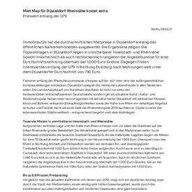 Durchschnittlich sind die Mietpreise in Düsseldorf für eine 70-Quadratmeter-Bestandswohnung im Vergleich zum Vorjahr um 3,8 Prozent gestiegen. Für keine Station entlang des öffentlichen Nahverkehrsnetzes konnte eine Verringerung verzeichnet werden.