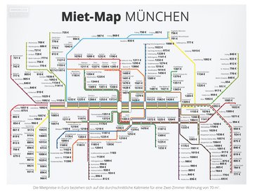 Beim Vergleich mit der Miet-Map von 2016 wird deutlich, dass auch die Mietpreise an weniger zentralen Bahnhöfen entlang des Münchener S-Bahnnetzes deutlich angestiegen sind. An keiner Station des Fahrplans sind die Mietkosten für eine vergleichbare Wohnung mit 70 Quadratmetern gesunken. Im Durchschnitt stiegen die Mietpreise quer durch alle Stationen des Münchener U- und S-Bahn-Netzes um 24 Prozent.