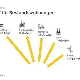 Quadratmeterpreis Q4 2022 in Euro | 10,88 € | 15,95 € | 13,64 € | 15,66 € | 14,98 € | 13,72 € | 21,37 € | 16,33 € |
