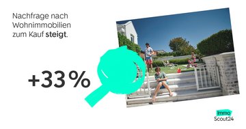 Eigentumswohnungen mit Balkon oder Garten erfreuen sich ebenfalls stärkerer Beliebtheit. So stieg die Nachfrage für Eigentumswohnungen mit Balkon zwischen Dezember 2020 und Februar 2021 im Schnitt um 29 Prozent im Vergleich zum Vorjahr. Eigentumswohnungen mit Garten wurden im gleichen Zeitraum auf ImmoScout24 mit einem Plus von 31 Prozent häufiger nachgefragt.