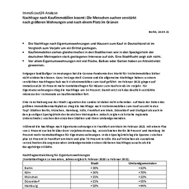 Die Analyse haben wir im Rahmen unseres digitalen Mediengespräch ImmoInsight "Ein Jahr Corona: Wie verändert sich der Wohnimmobilienmarkt?" vorgestellt. Die Präsentation zum ImmoInsight finden Sie hier: https://www.immobilienscout24.de/unternehmen/downloads/