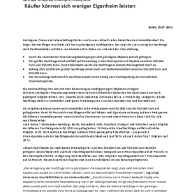 - Der größte Nachfrageanteil entfällt seit Zinsanstieg in den Metropolen auf Objekte zwischen 250.000 Euro und 550.000 Euro. Deutschlandweit wuchs die Nachfrage in diesem Preissegment stark an.