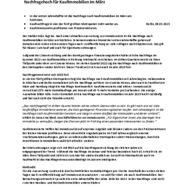 Aufgrund der Zinsentwicklung und der damit gestiegen Finanzierungskosten hatte sich die Nachfrage im Sommer 2022 von Kaufimmobilien in Richtung Mietmarkt verschoben. Im dritten Quartal erreicht sie Ihren Tiefpunkt unter dem Vor-Corona-Niveau. Im vierten Quartal 2022 zog die Nachfrage nach Kaufimmobilien in den Metropolen wieder leicht an. Dieser Trend setzt sich nun auch im Jahr 2023 fort.
