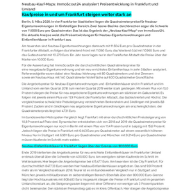 Neubau-Kauf-Maps: Kaufpreise in und um Frankfurt steigen weiter stark an