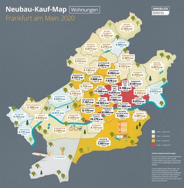 Neubau-Kauf-Maps: ImmoScout24 analysiert Preisentwicklung in Frankfurt und Umland