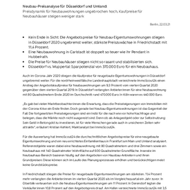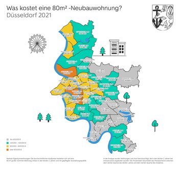 - Kein Ende in Sicht: Die Angebotspreise für Neubau-Eigentumswohnungen stiegen in Düsseldorf 2020 ungebremst weiter, stärkste Preiszuwächse in Friedrichstadt mit 11,4 Prozent.