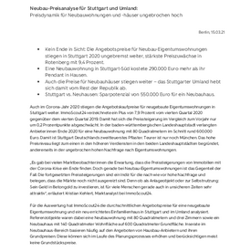 Neubau-Preisanalyse 2021 für Stuttgart und Umland
