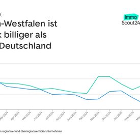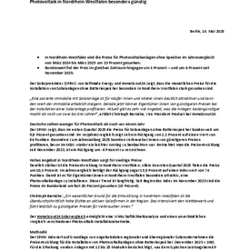 - In Nordrhein-Westfalen sind die Preise für Photovoltaikanlagen ohne Speicher im Jahresvergleich von März 2024 bis März 2025 um 13 Prozent gesunken.