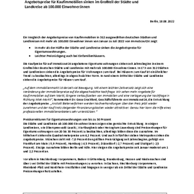 - In mehr als der Hälfte der Städte und Landkreise sinken die Angebotspreise für Eigentumswohnungen.