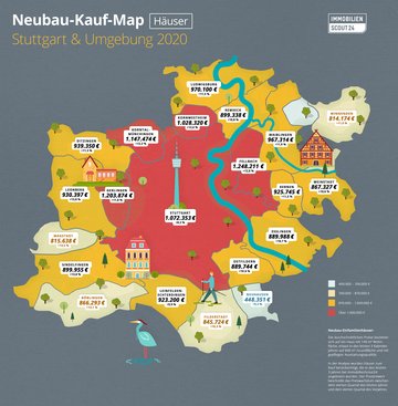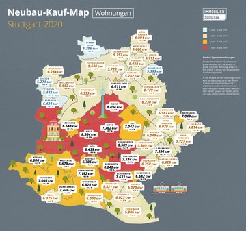 Neubau-Kauf-Maps: ImmoScout24 analysiert Preisentwicklung in Stuttgart und Umland