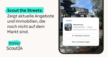 Genau hier setzt „Scout the Streets“ von ImmoScout24 an. Statt später zu recherchieren, lassen sich Immobilien direkt vor Ort entdecken. Die Funktion nutzt die Smartphone-Kamera in Kombination mit Augmented Reality, um Gebäude in Echtzeit zu erkennen. Nutzer:innen richten ihr Handy einfach auf ein Haus und erhalten direkt im Kamerabild passende Immobilieninformationen. Dadurch wird die Immobiliensuche so einfach wie ein Blick durch die Smartphone-Kamera.